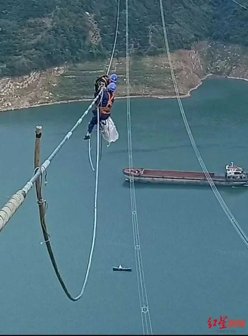 ▲向日木在高空工作的视频截图向日木告诉红星新闻记者,视频中看到的这一段,是特高压线翻过甘孜折多山的路上,海拔大约有3800米。“下雪天,站在高压线上看到的是白茫茫的一片,根本看不到下方有多高。其实,高压线离地面大约有八九十米高,铁塔的塔脚下面还有上百米高的悬崖。因为下雪天容易打滑,所以我把安全绳拴在腰上,趴在高压线上倒退着前行……”工作:从事高压线路架设工作11年每月能挣上万元但很危险高压线路架设工人,被誉为城市光源的“守护者”。“第一次爬上铁塔,还有一些害怕。但是,现在已经不怕了,就像在高空‘走钢丝’一样。”向日木介绍,目前,他已经从事高压线路架设工作11年,走遍了大半个中国。